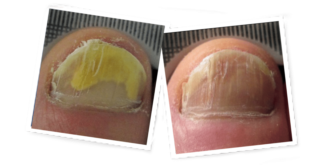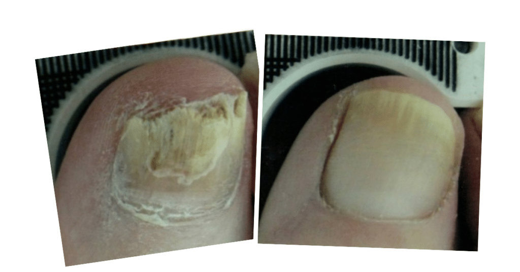 Many patients notice gradual improvement in nail appearance and clarity within the first few months. As healthy nail begins to grow in, visible progress continues. Around the six-month mark, patients often see meaningful new clear nail growth as the damaged portion grows out.